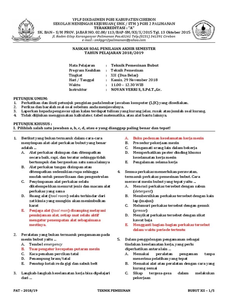 Contoh soal pilihan ganda tentang mesin frais dapatkan contoh from.